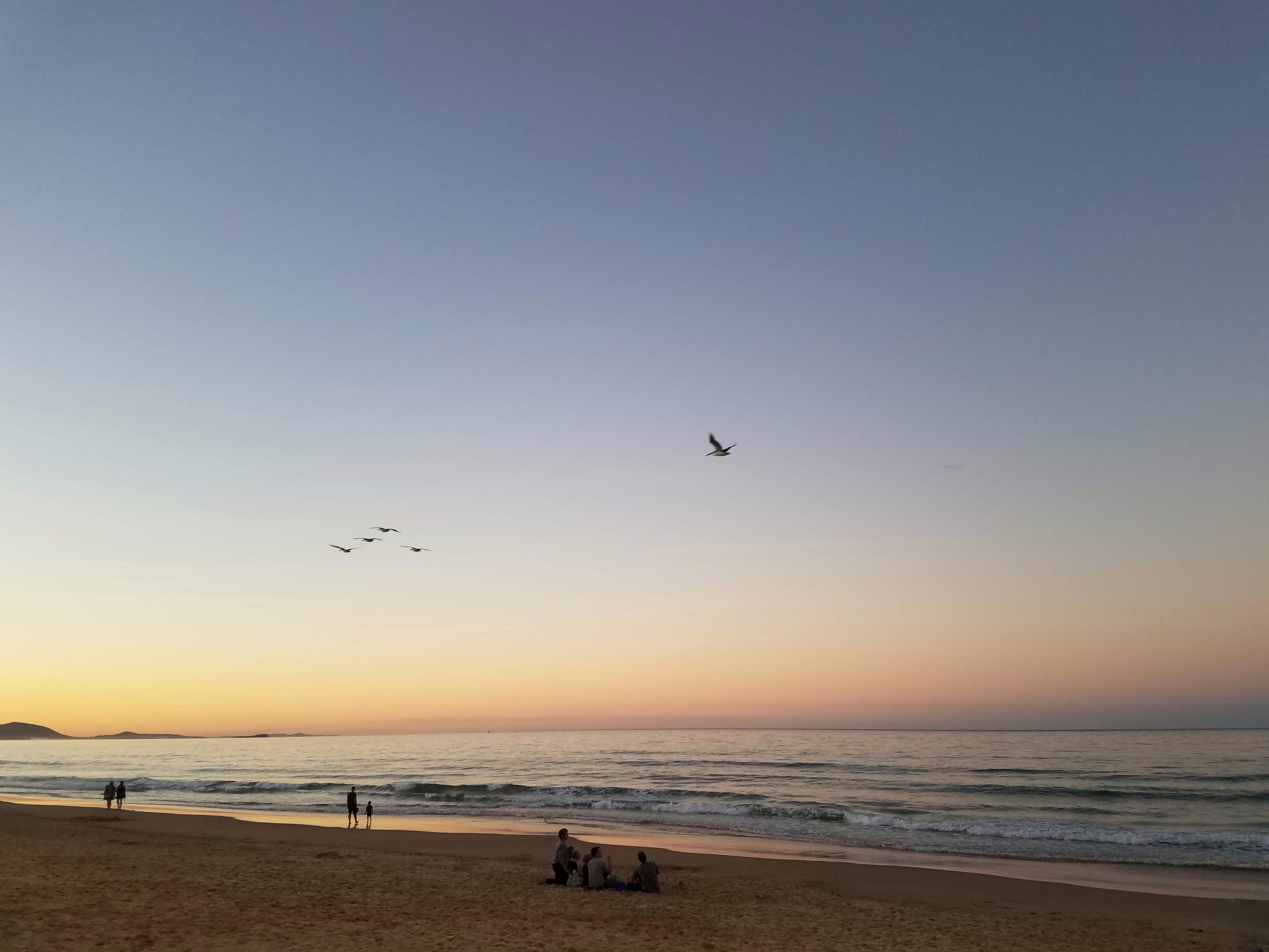 After the exciting moment we bused over to Mooloolaba beach. It was a beautiful, long sandy beach lined with shops full of life. People filled the sand, yet there was plenty of empty beach to explore. We took pictures as we walked up and down the stunning blue coast. Then we stopped and grabbed a bite to eat at one of the beachfront shops, and stayed to watch the sun set over the water. It was quite the speculation. And that’s when I fell in love.